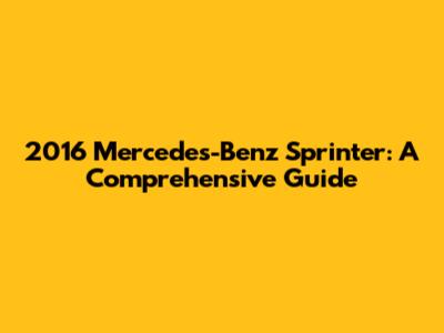 2016 Mercedes-Benz Sprinter: A Comprehensive Guide