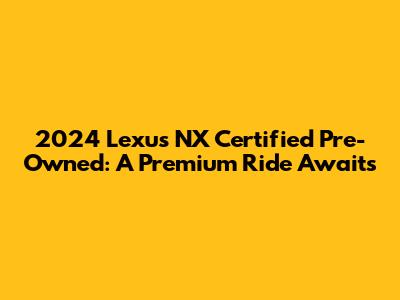 Hey guys, if you're in the market for a luxury SUV, and you're thinking about a pre-owned vehicle, then the 2024 Lexus NX Certified Pre-Owned (CPO) should be at the top of your list! We're diving deep into why a CPO Lexus NX is a smart move, what you can expect from the vehicle, and why it's a great way to experience Lexus luxury without breaking the bank. Let's break it down! First off, what exactly does Certified Pre-Owned mean? Well, when you buy a CPO Lexus NX, you're not just getting a used car; you're getting a vehicle that has gone through a rigorous inspection process. Lexus has a reputation for quality, and their CPO program reflects that. To be certified, a 2024 NX must pass a comprehensive 161-point inspection. This inspection covers everything from the engine and transmission to the interior and exterior features. Any necessary repairs are made using genuine Lexus parts, ensuring the vehicle meets the manufacturer's high standards.