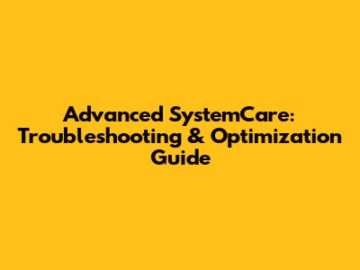 Advanced SystemCare: Troubleshooting & Optimization Guide