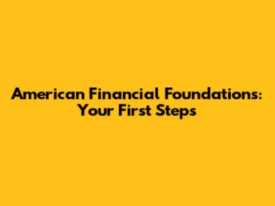 American Financial Foundations: Your First Steps