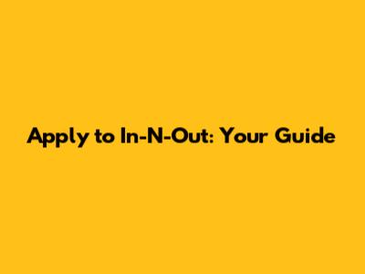 Apply To In-N-Out: Your Guide