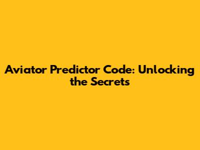 Aviator Predictor Code: Unlocking The Secrets