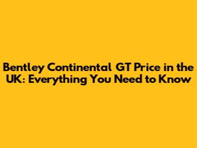 Bentley Continental GT Price In The UK: Everything You Need To Know