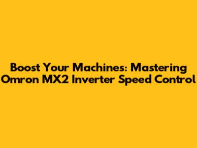 Boost Your Machines: Mastering Omron MX2 Inverter Speed Control