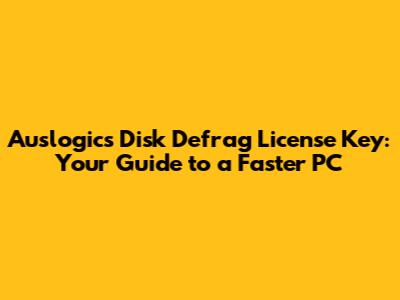 Boost Your PC: Auslogics Disk Defrag License Keys & Optimization