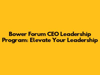 Bower Forum CEO Leadership: Elevate Your Leadership