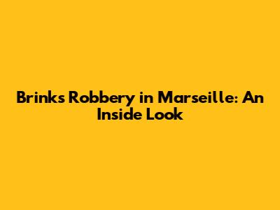 Brink's Robbery In Marseille: An Inside Look