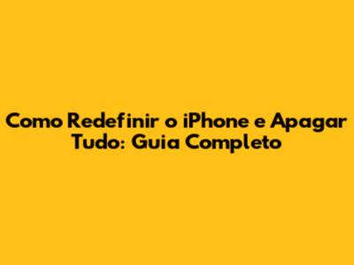Como Redefinir O IPhone E Apagar Tudo: Guia Completo
