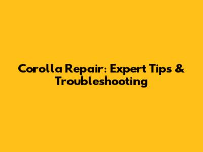 Corolla Repair: Expert Tips & Troubleshooting