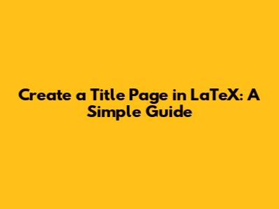 Create A Title Page In LaTeX: A Simple Guide