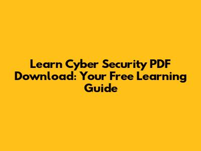 Cyber Security PDF: Your Free Learning Guide