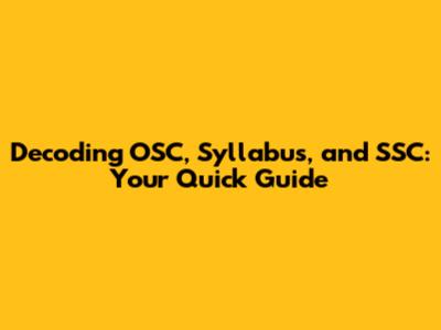 Decoding OSC, Syllabus, And SSC: Your Quick Guide