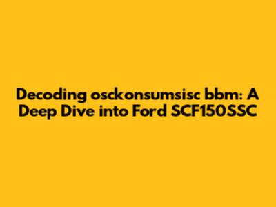 Decoding Osckonsumsisc Bbm: A Deep Dive Into Ford SCF150SSC