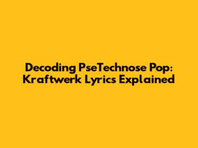Decoding PseTechnose Pop: Kraftwerk Lyrics Explained