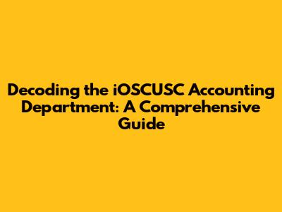 Decoding The IOSCUSC Accounting Department: A Comprehensive Guide