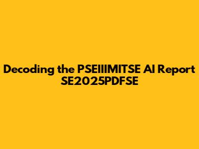 Decoding The PSEIIIMITSE AI Report SE2025PDFSE