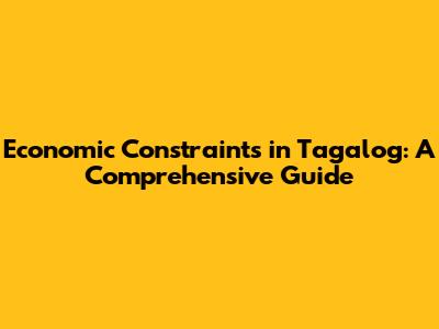 Economic Constraints In Tagalog: A Comprehensive Guide