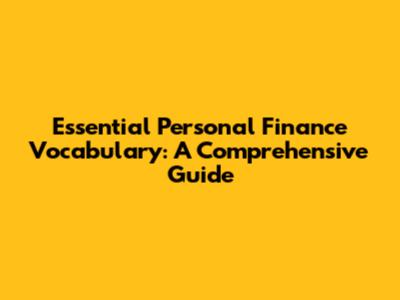 Essential Personal Finance Vocabulary: A Comprehensive Guide