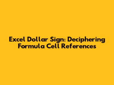 Excel Dollar Sign: Deciphering Formula Cell References