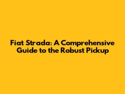 Fiat Strada: A Comprehensive Guide To The Robust Pickup