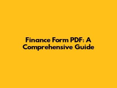 Finance Form PDF: A Comprehensive Guide