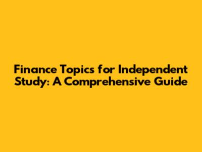 Finance Topics For Independent Study: A Comprehensive Guide