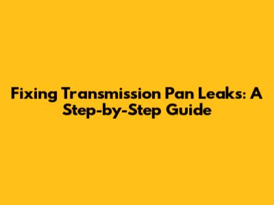 Fixing Transmission Pan Leaks: A Step-by-Step Guide