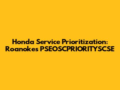 Honda Service Prioritization: Roanoke's PSEOSCPRIORITYSCSE