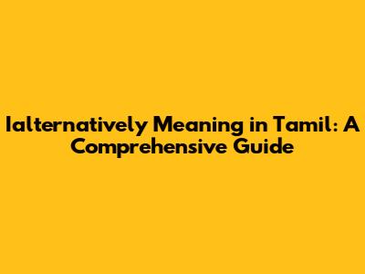 Ialternatively Meaning In Tamil: A Comprehensive Guide