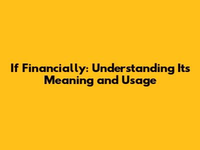 If Financially: Understanding Its Meaning And Usage