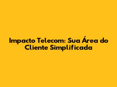 Impacto Telecom: Sua Área Do Cliente Simplificada