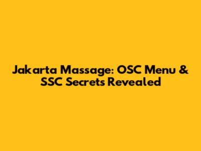 Jakarta Massage: OSC Menu & SSC Secrets Revealed