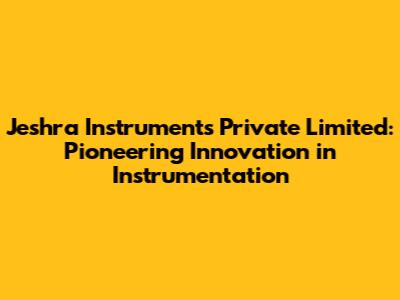Jeshra Instruments: Innovating Instrumentation Solutions