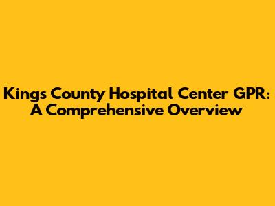 Kings County Hospital Center GPR: A Comprehensive Overview