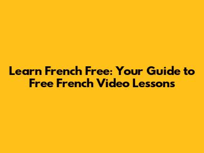 Learn French Free: Your Guide To Free French Video Lessons