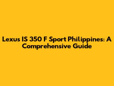 Lexus IS 350 F Sport Philippines: A Comprehensive Guide