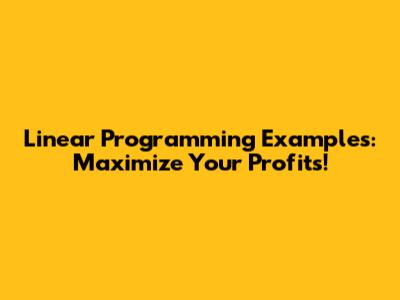 Linear Programming Examples: Maximize Your Profits!