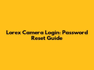 Lorex Camera Login: Password Reset Guide