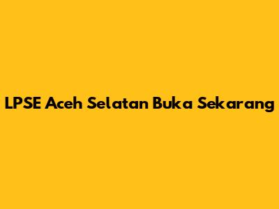 LPSE Aceh Selatan: Opportunities Await!