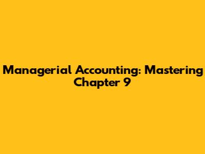 Managerial Accounting: Mastering Chapter 9