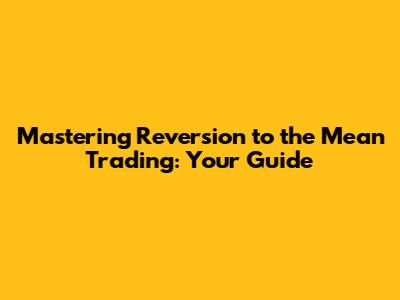 Mastering Reversion To The Mean Trading: Your Guide