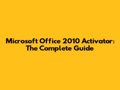 Microsoft Office 2010 Activator: The Complete Guide