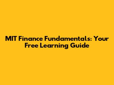 MIT Finance Fundamentals: Free Learning Guide