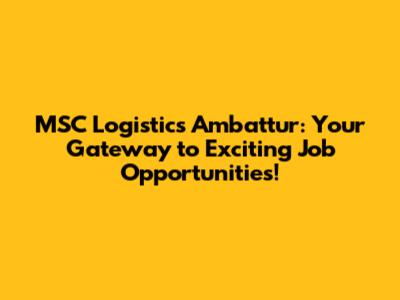 MSC Logistics Ambattur: Your Job Search Starts Here!