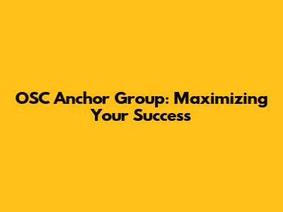 OSC Anchor Group: Maximizing Your Success
