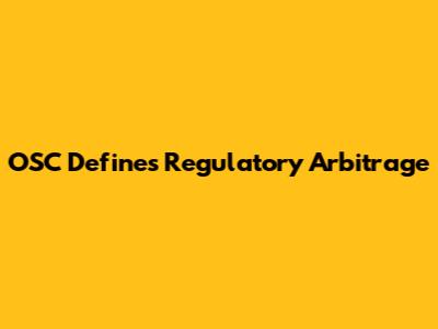OSC Definition Of Regulatory Arbitrage: Explained