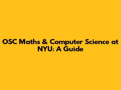 OSC Maths & Computer Science At NYU: A Guide