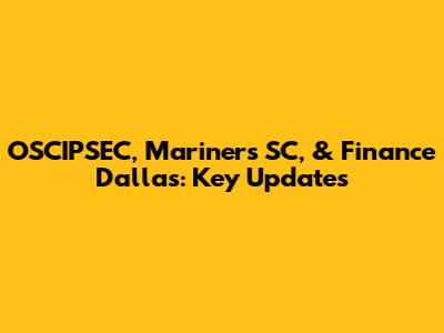 OSCIPSEC, Mariners SC, & Finance Dallas: Key Updates
