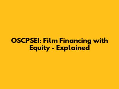 OSCPSEI: Film Financing With Equity - Explained