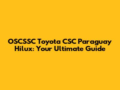 OSCSSC Paraguay Hilux: Your Ultimate Guide